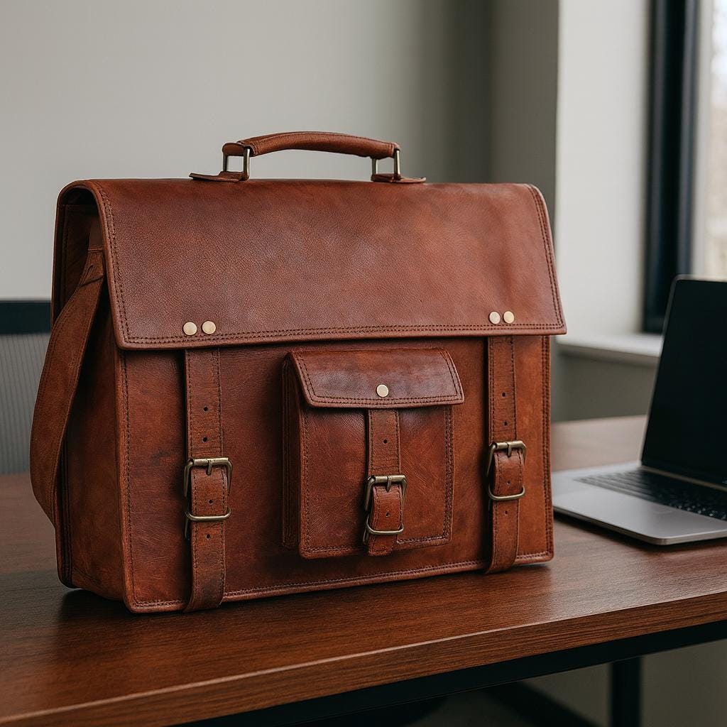Upgrade your everyday carry with this premium handcrafted leather briefcase, designed for professionals, students, and anyone who loves timeless style. Made from 100% genuine full-grain leather, this bag features a beautiful rustic brown finish that becomes even better with age.