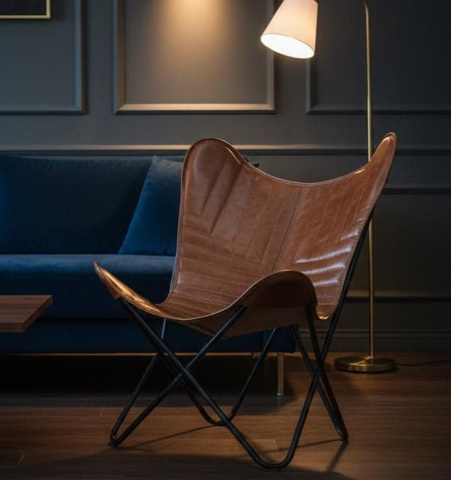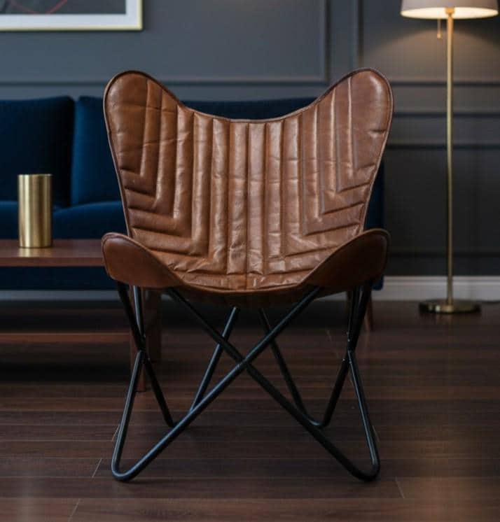 Add timeless sophistication to your home with this Handmade Genuine Leather Butterfly Chair, a modern statement piece designed for lovers of luxury comfort and minimalist interiors. Built with a premium hand-stitched leather seat and a strong powder-coated iron frame, this lounge chair combines durability with rich aesthetic appeal.