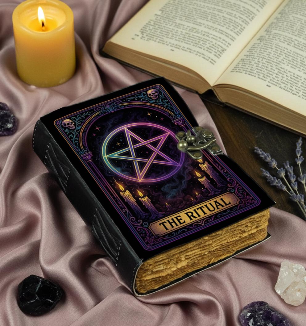Every page is crafted to feel ancient and ceremonial, with hand-torn deckle parchment pages that enhance the experience of spell writing, shadow work, moon ritual documentation, tarot journaling, and intuitive channeling. Secured with an antique brass lock, this book becomes a personal magical artifact that protects your private workings.