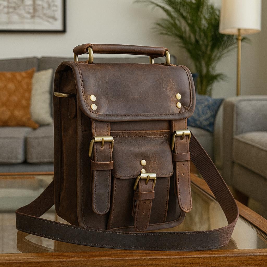 This handcrafted brown leather crossbody bag is made from premium full-grain leather, designed for everyday use with a classic vintage look. Featuring a sturdy top handle, adjustable shoulder strap, and secure buckle closures, this leather bag combines functionality, durability, and timeless style.