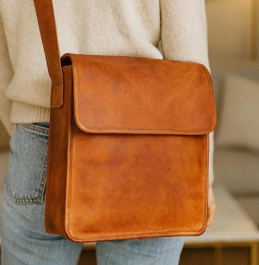 The rich leather ages beautifully, developing a unique patina over time. Ideal for carrying essentials like a tablet, notebook, wallet, and more — whether you're commuting, studying, or exploring the city.
