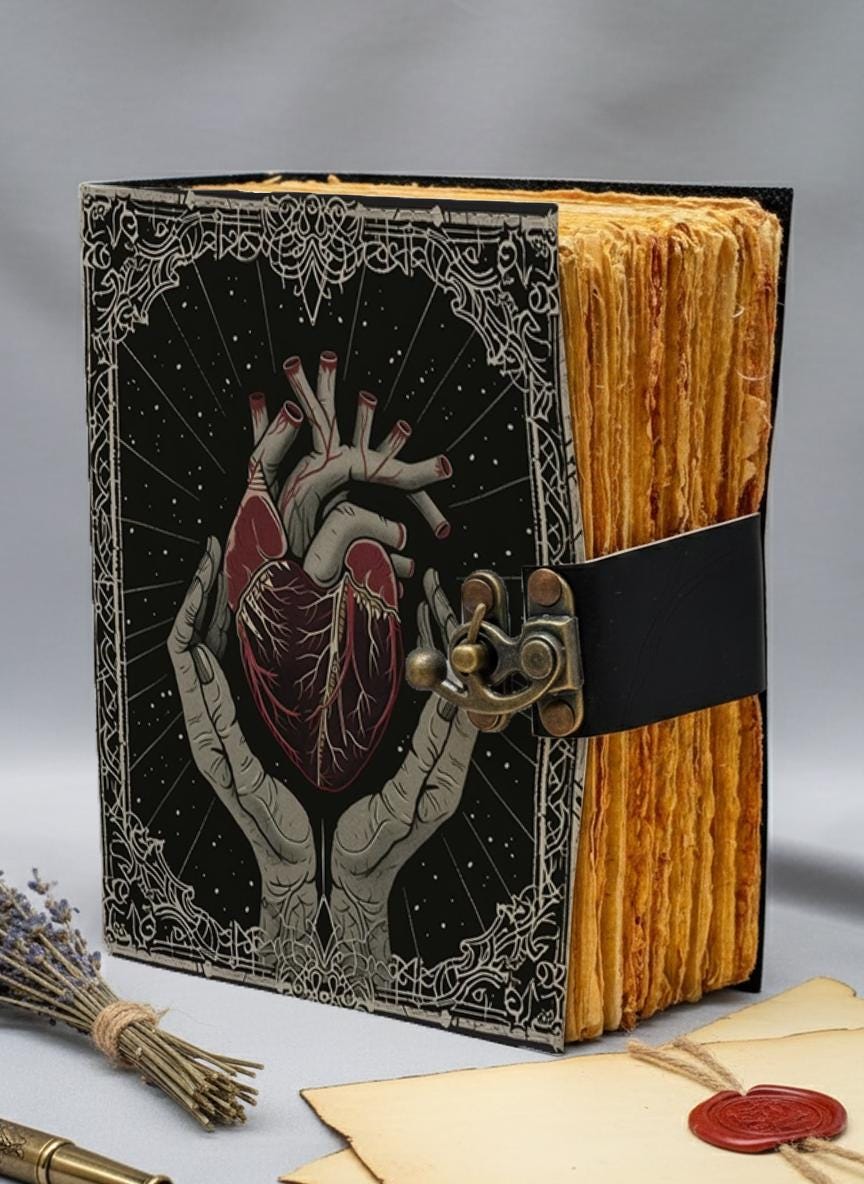 Heart Anatomy Leather Journal with Lock | Vintage Deckle Edge Pages | Witchy Notebook | Unique Gift for Writers & Artists