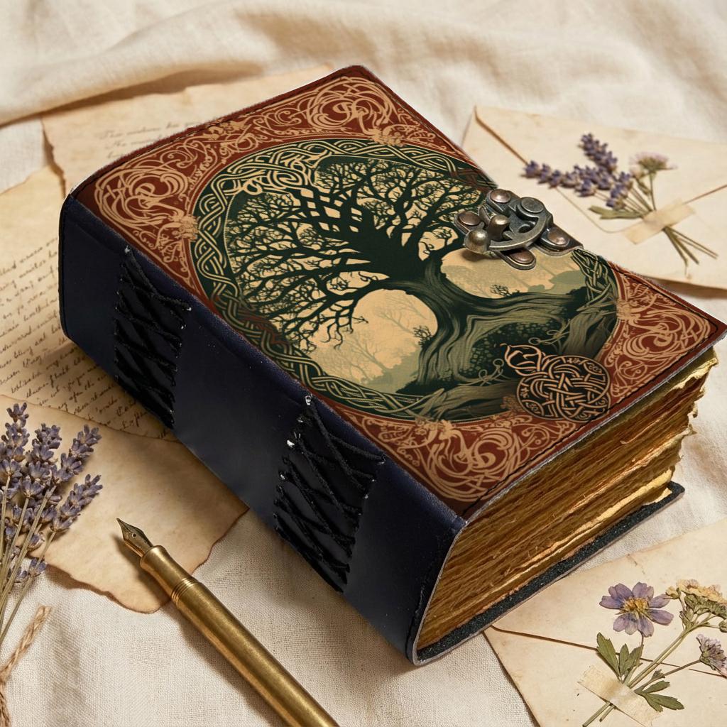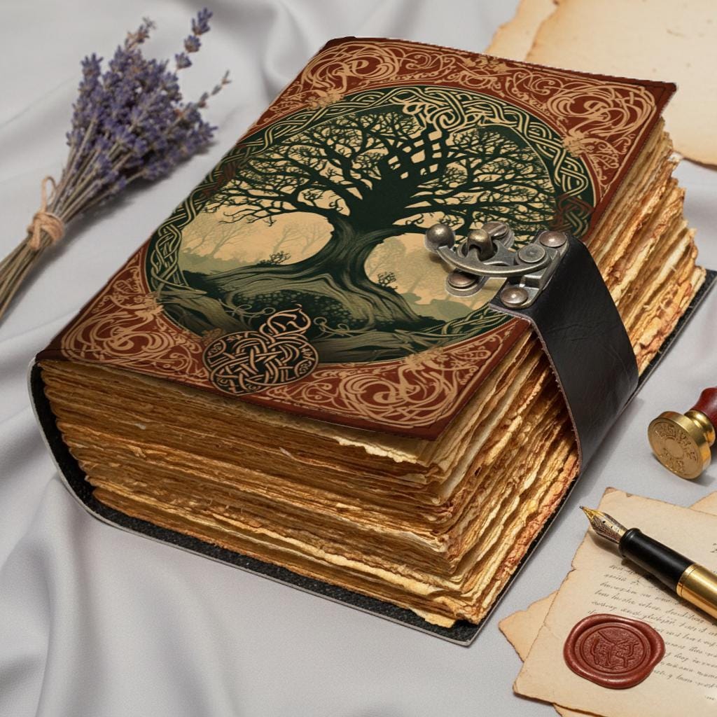 Capture your thoughts, sketches, prayers, or dreams in this beautifully handcrafted Tree of Life leather journal. Designed with a rich vintage aesthetic, this journal features an intricate Tree of Life artwork inspired by Celtic symbolism, representing growth, strength, and connection.