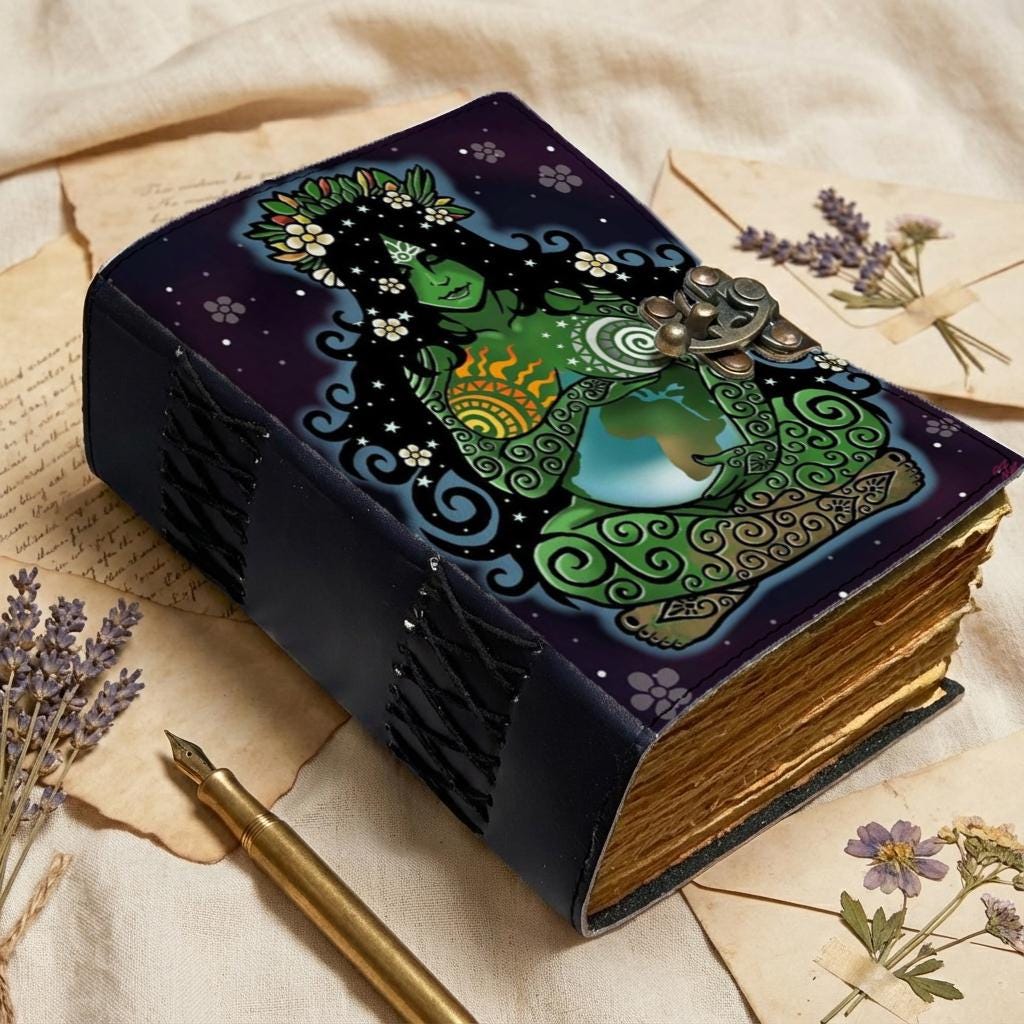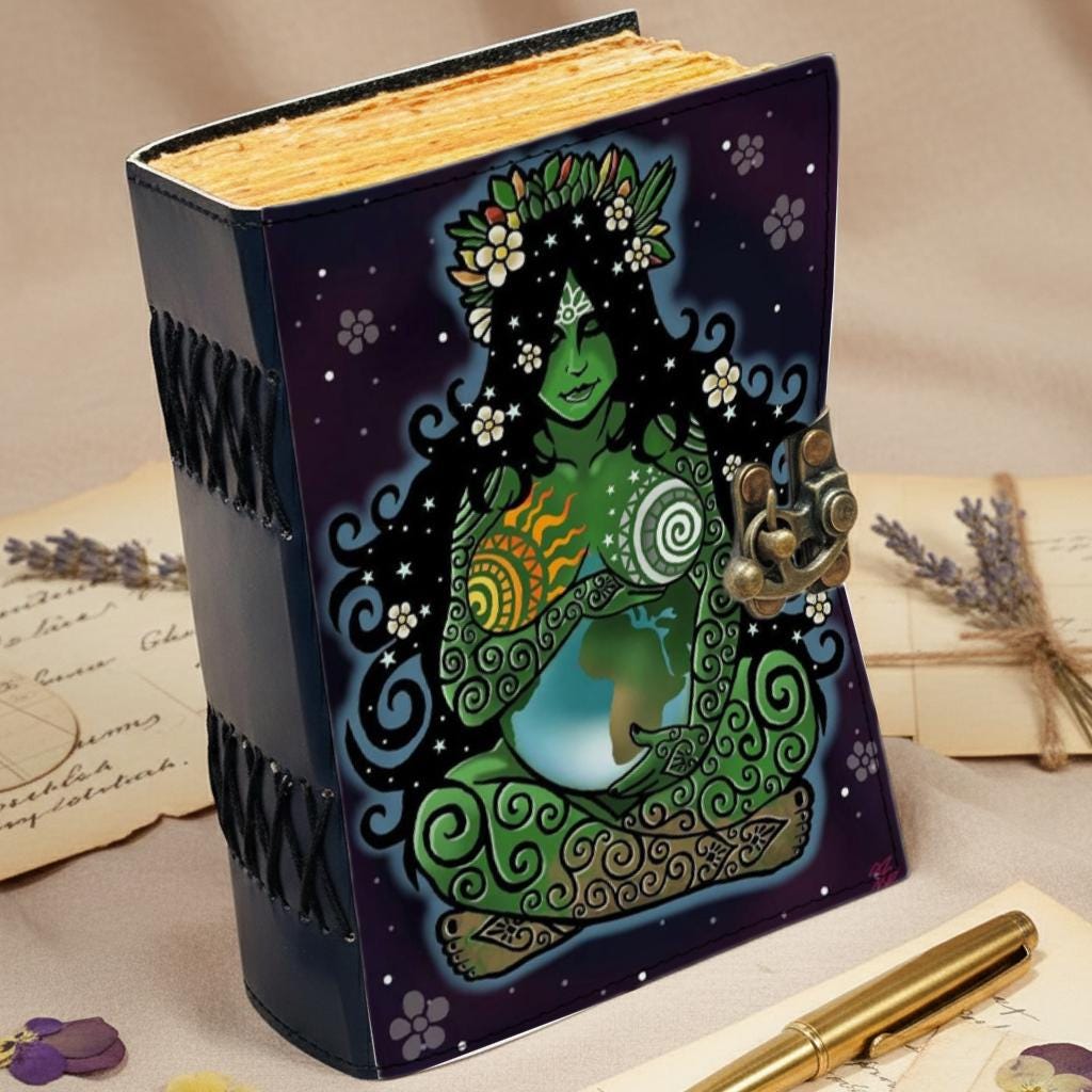 🌿🌍 Handmade Earth Goddess Leather Journal – Sacred, Spiritual & Powerful 🌍🌿