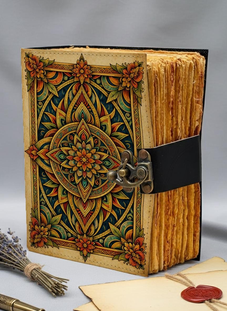 Made with premium genuine leather and filled with thick antique-style deckle edge handmade paper, this journal is perfect for journaling, meditation notes, sketching, or manifestation writing. A sturdy metal clasp lock keeps your thoughts private and protected.